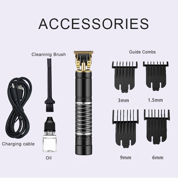 Nieuw ontwerp: 2020Nieuw ontwerp / gebruik: trimmen, kaal maken, snijden, vervagen, schetsen, tatoeëren / volledig metalen behuizing / blootliggend mes / maximale snelheid: 6100 / draadloos/bekabeld / opladen via USB: USB-C / starten: schuifschakelaar / ultra -Stil Ontwerp